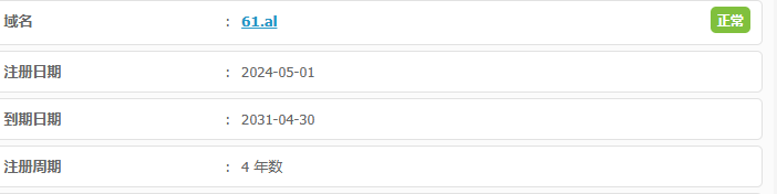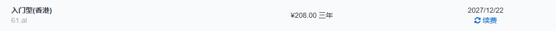 然后也是给我们的域名61.al续费了4年,现在购买这种短的域名都非常的贵!